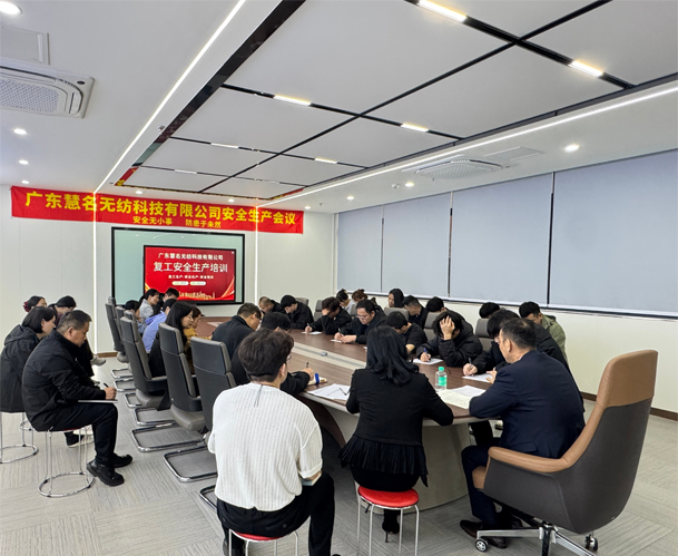 On March 18, 2026, Guangdong Huiming Non-woven Fabric Company convened a comprehensive quality and safety production meeting, attended by all employees from management to frontline staff. The meeting aimed to further consolidate the company's commitment to safety production and product quality, ensuring sustainable and stable development.